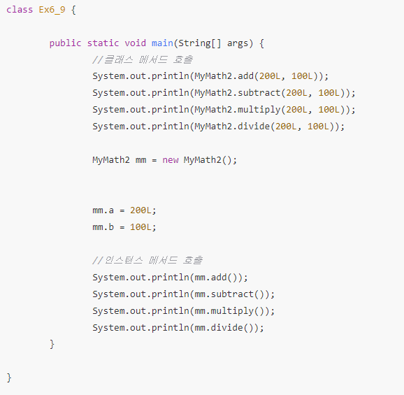 → MyMath2.add(200L, 100L); //클래스 메서드 호출