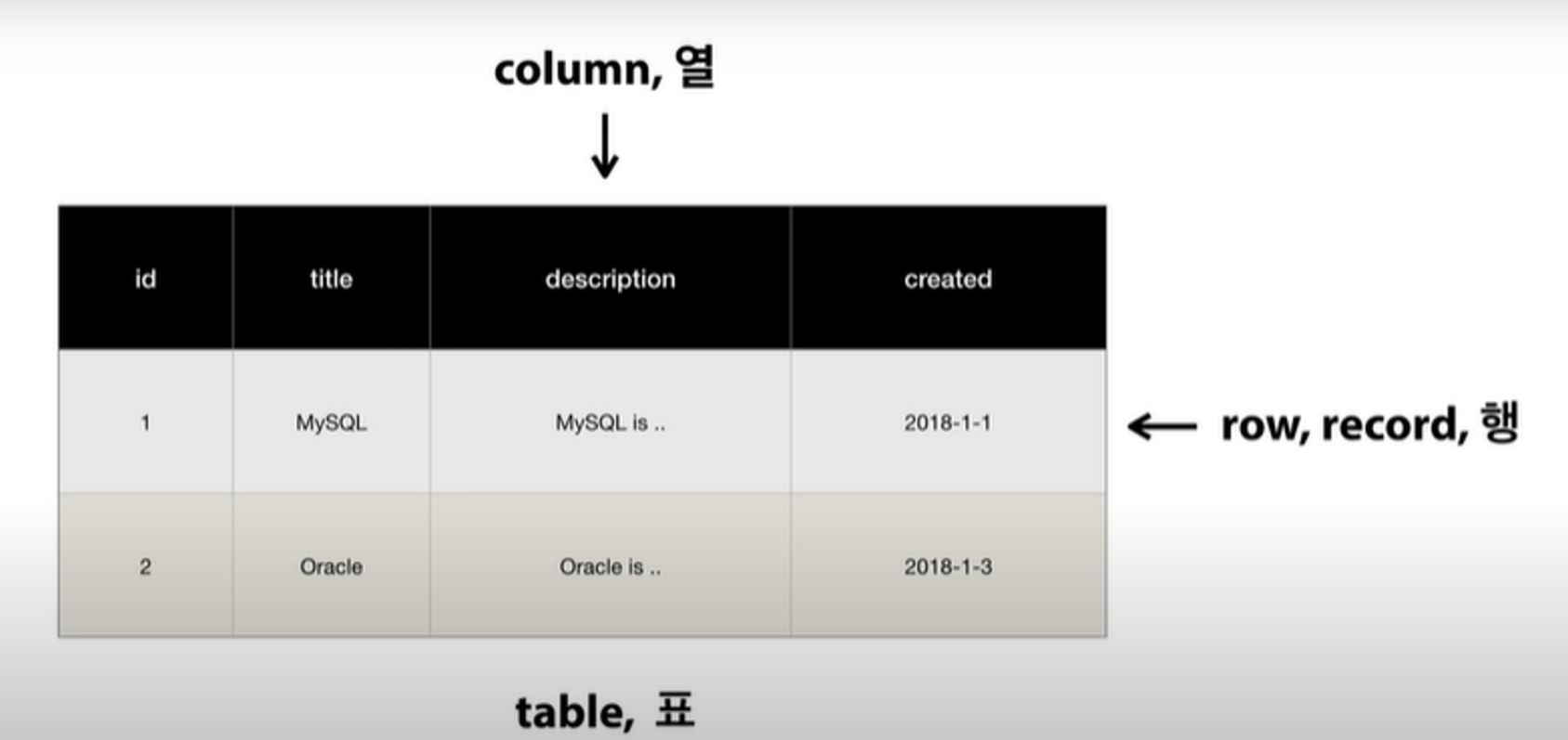 - MySQL과 같은 RDBMS는 데이터를 표의 형식으로 정리한다.