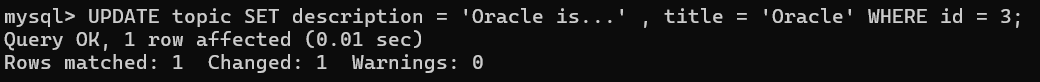 id 값이 3인 행의 'title'과 'description'을 수정해 보자.